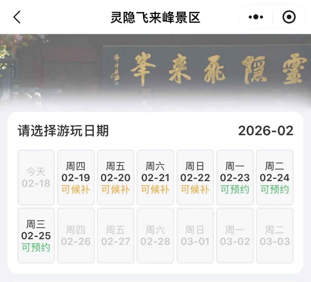 这几天,灵隐飞来峰景区迎来了如潮的游客,线上候补功能正式触发启用。需要非常提示警醒我们的是,春节假期接下来几天的灵隐飞来峰景区预约名额已进入候补状态,且候补人数较多。